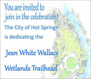 The City of Hot Springs invites the public to attend the dedication ceremony of the Jean White Wallace Wetlands Trailhead, 570 Television Hill Road in Hot Springs, Arkansas.